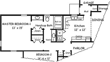 tub or a handicap roll-in shower. The washer and dryer move into a