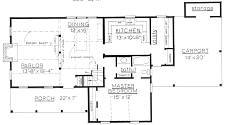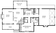 stair rail makes this house plan, F-1585, more country. The wide parlor