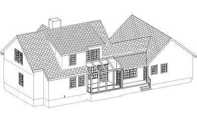 The center fireplace in this plan, F-1750, gives the opportunity for a cozy master bedroom fireplace with ample room for sitting. Note the brick hearth extends to form the floor at the entry. The plan offers two master bathroom layouts, one with a separate shower and Jacuzzi tub. The parlor is long enough to accommodate a dining table. Of course, the greenhouse can become a conventional screen porch or sun room. The country kitchen is long enough for a sitting area in the end if the dining is in the parlor. A mud room closes off the utility room. The small pantry can become an exterior rear door if required. Upstairs the bedrooms are separated by the stairway. There is not a basement layout for this plan. |